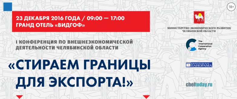 23 декабря в Челябинске прошла конференция по внешнеэкономической деятельности «ЭКСПОРТНАЯ ДЕЯТЕЛЬНОСТЬ КАК ФАКТОР ЭФФЕКТИВНОГО РАЗВИТИЯ МАЛЫХ И СРЕДНИХ ПРЕДПРИЯТИЙ».