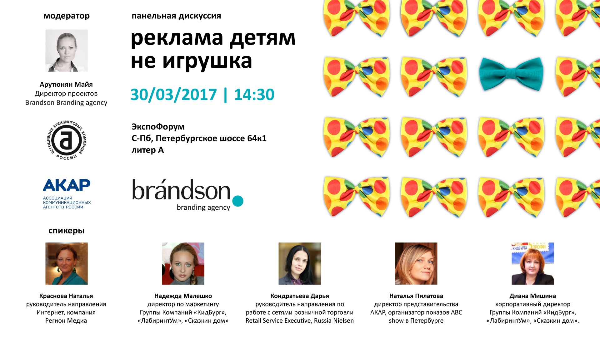 Поддавшись очарованию простых и неизменно работающих приёмов, можно забыть о том, что любой контакт с детьми глубоко влияет на их восприятие мира. Ответственность взрослого в этих вопросах важна как никогда, если мы ставим своей целью воспитать поколение счастливых и гармоничных людей. В рамках дискуссии известные специалисты отрасли обсудят со слушателями этические и практические ограничения в брендинге и рекламе детских товаров, ответят на волнующие вопросы и постараются прийти к единому мнению – каким правилам должна следовать маркетинговая политика компаний в этой деликатной области.
