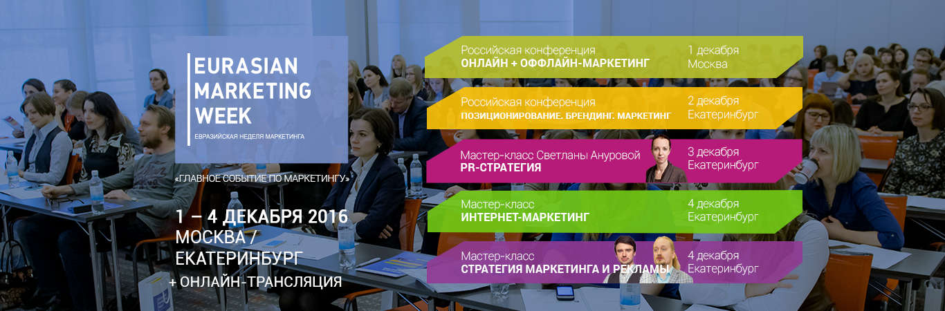 С 1 по 3 декабря в Москве и Екатеринбурге состоится ежегодное мероприятие EURASIAN MARKETING WEEK (EMW) при поддержке АБКР, в рамках которого пройдут конференции и мастер-классы.