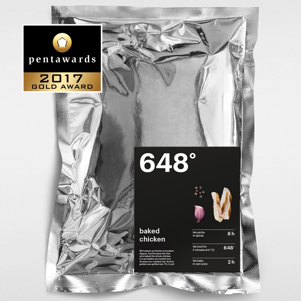 Брендинговое агентство :OTVETDESIGN отличилось трижды: команда получила одну золотую и две бронзовых статуэтки за дизайн упаковки запеченной курицы 648° и "Полисан":