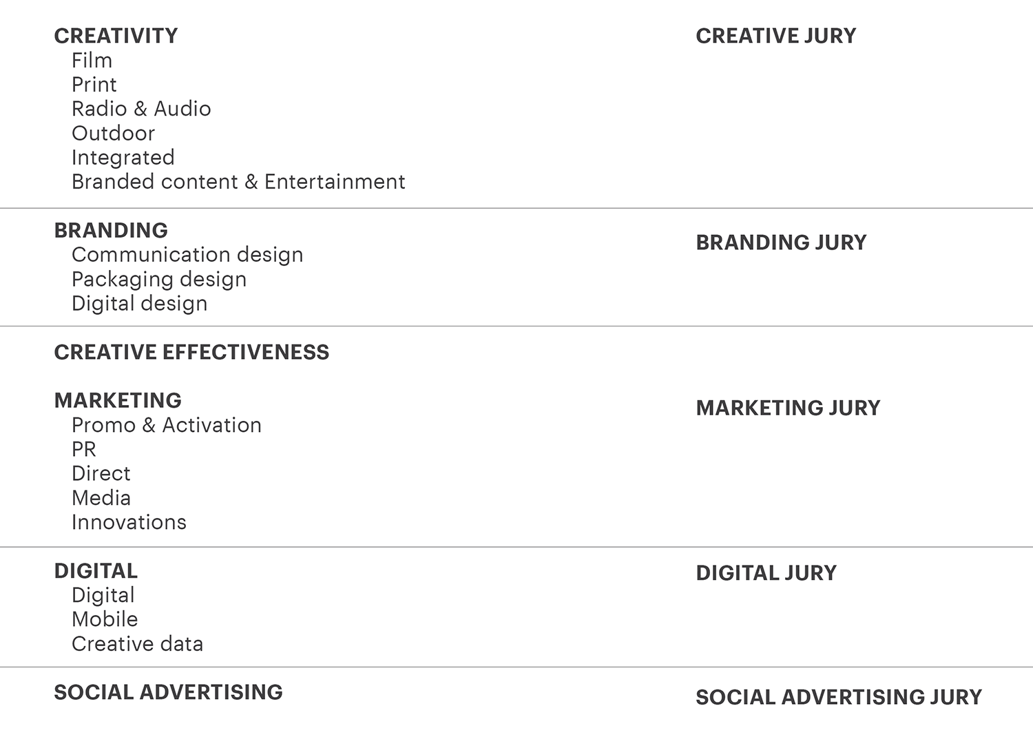 Работы принимаются в 6 конкурсов, 17 номинаций, которые будет оценивать 5 составов международного жюри.