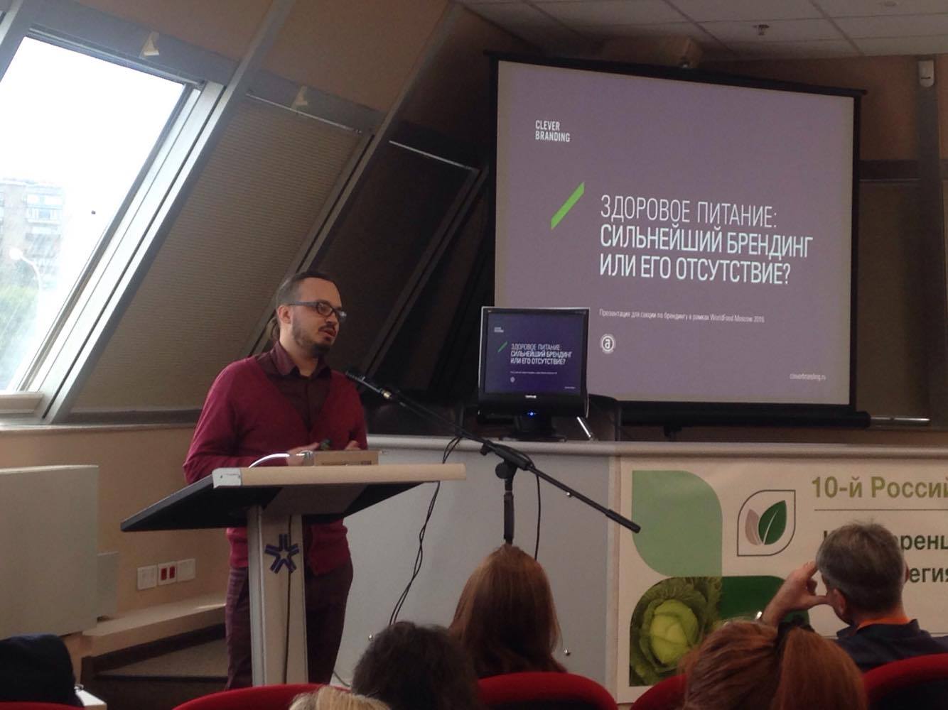 Артем Маслов, управляющий партнер брендингового агентства Clёver Branding, раскрыл тему брендинга здорового питания, рассмотрев несколько кейсов российского и международного рынков: "Категория здорового питания очень сильно отличается от других повседневных продуктов, поэтому возможен совершенно иной подход — как, например, это делают супермаркеты ВкуссВилл и Избенка. Идея таких супермаркетов очень нова и оригинальна в России, но в Европе и США давно сущетвуют и набирают силу супермаркеты packaging free (без упаковки). В любых условиях необходимо изучать зарубежный брендинговый опыт и искать нестандартные решения, которые помогут получить сильнейшее конкурентное преимущество или же вообще создать новую нишу на рынке".