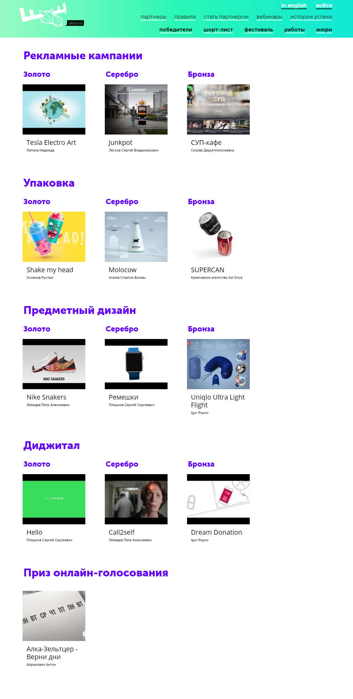 Посмотреть всех победителей вы можете на сайте - http://fakestival.ru/winner!