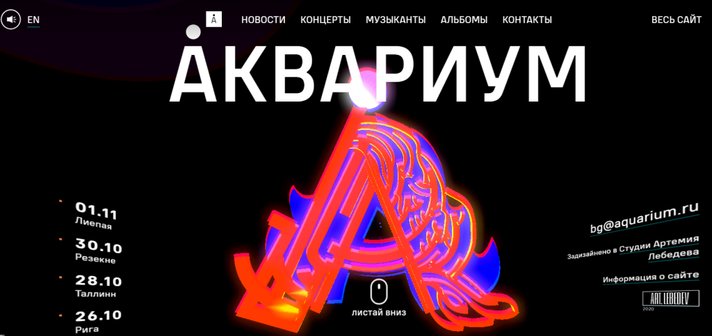 - Digital Design - Art. Lebedev Studio: Website of the legendary Russian rock band Aquarium (Digital and Interactive Design)