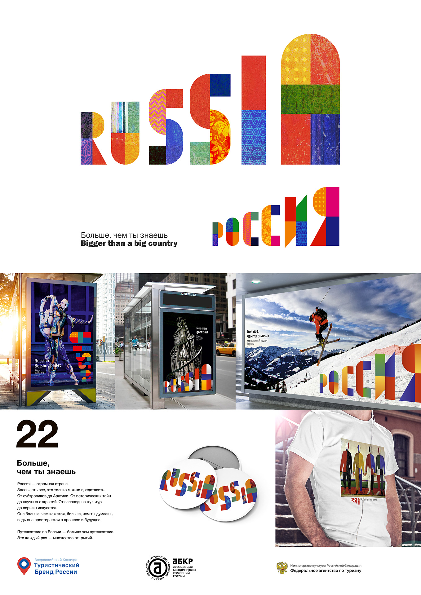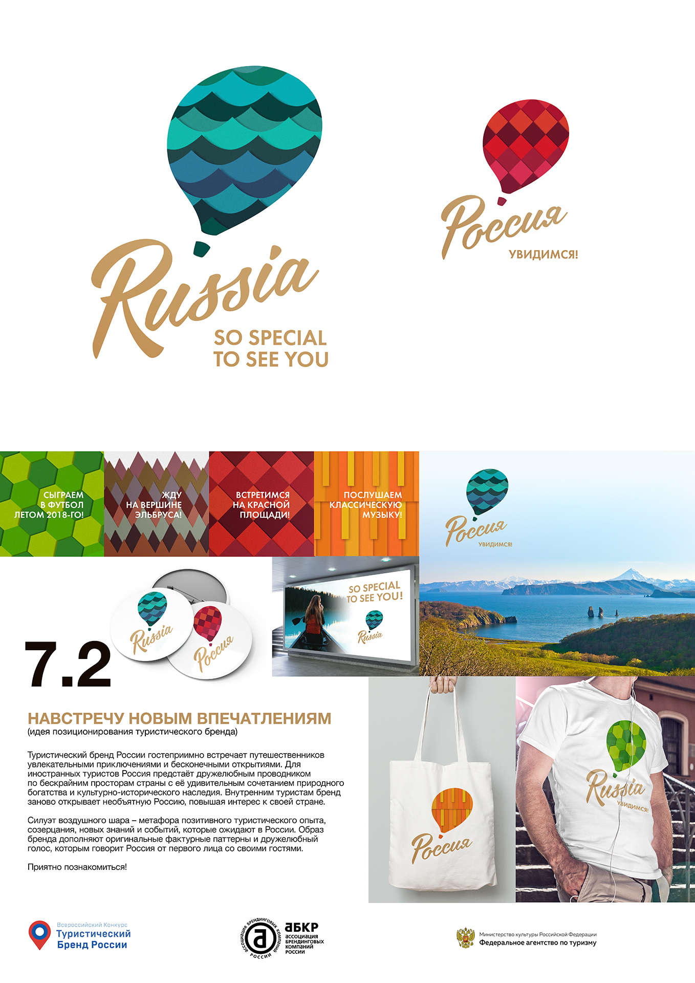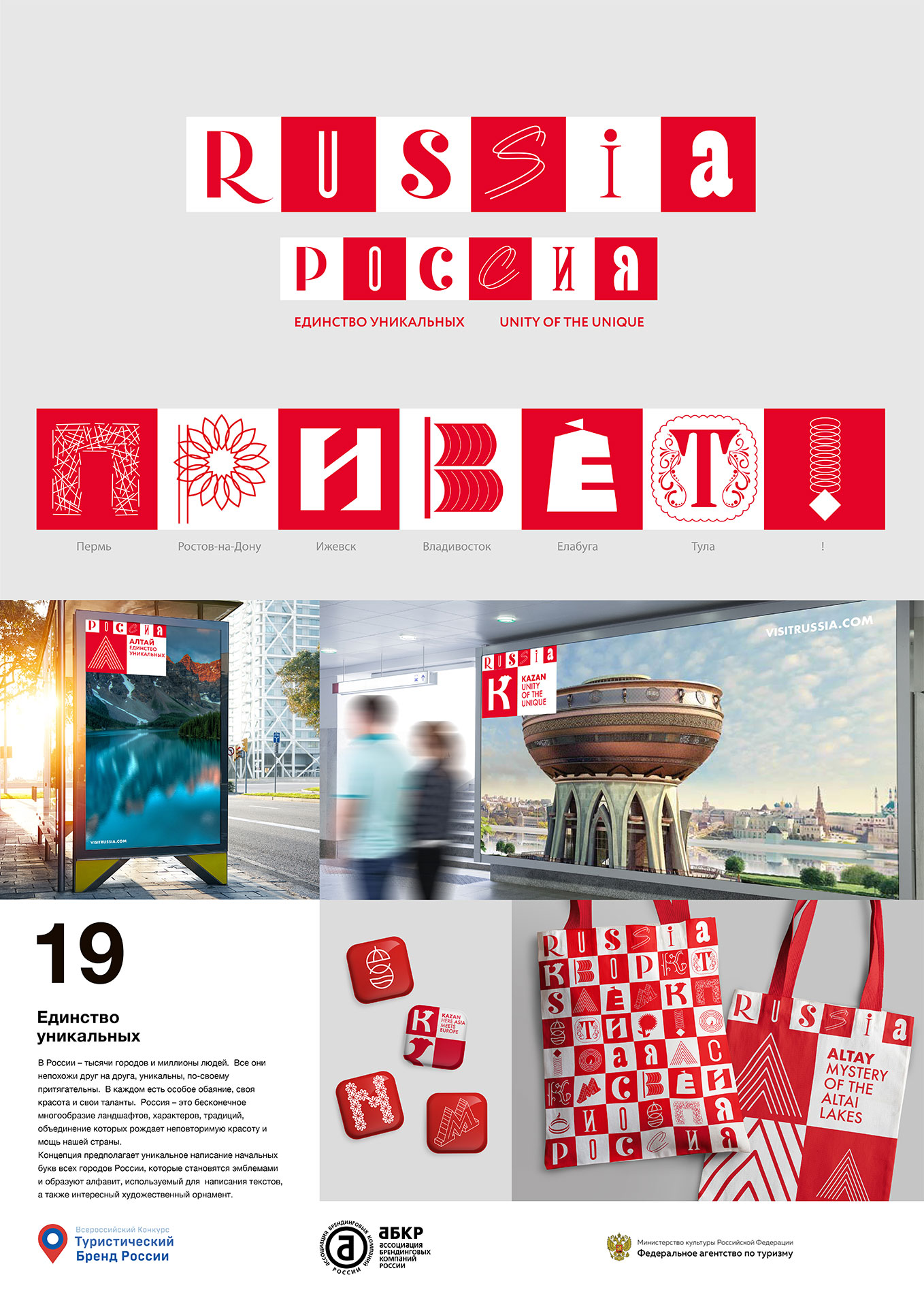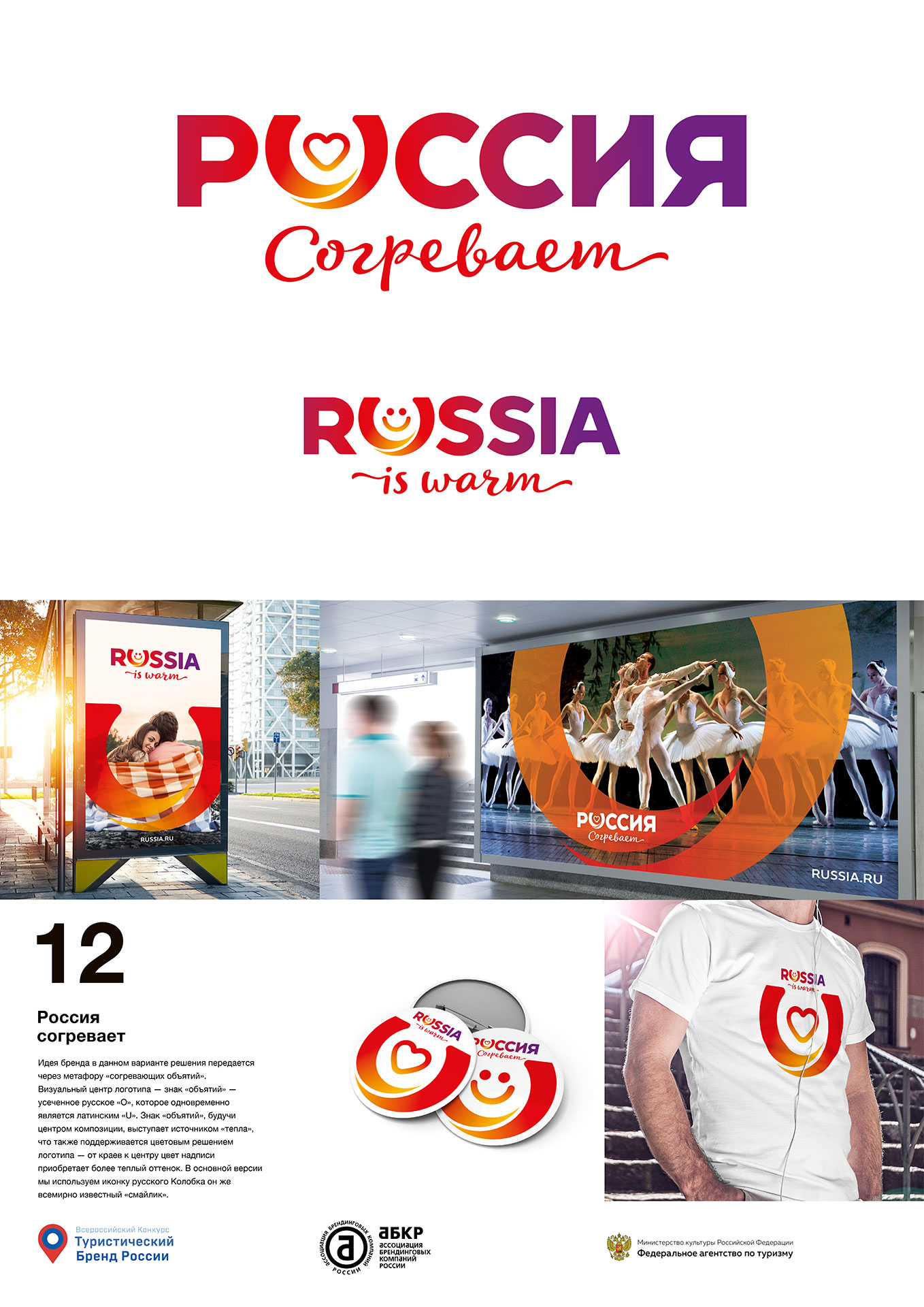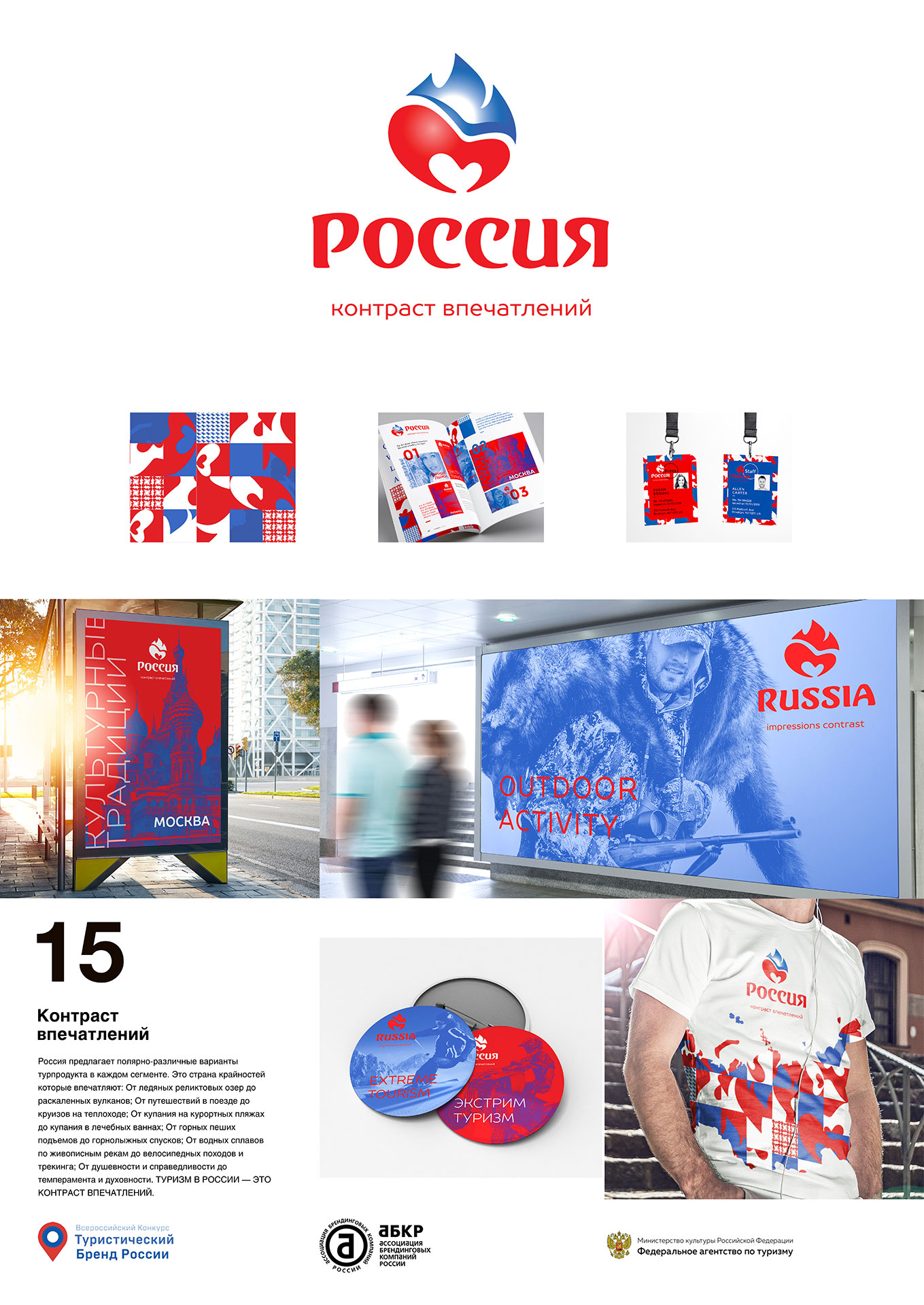 Экспертный совет Всероссийского конкурса «Туристический бренд России» отобрал 10 лучших концептов, разработанных российскими брендинговыми агентствами. Глава Ростуризма Олег Сафронов и сопрезидент АБКР Алексей Андреев презентовали варианты будущего национального бренда на Московской биеннале дизайна.