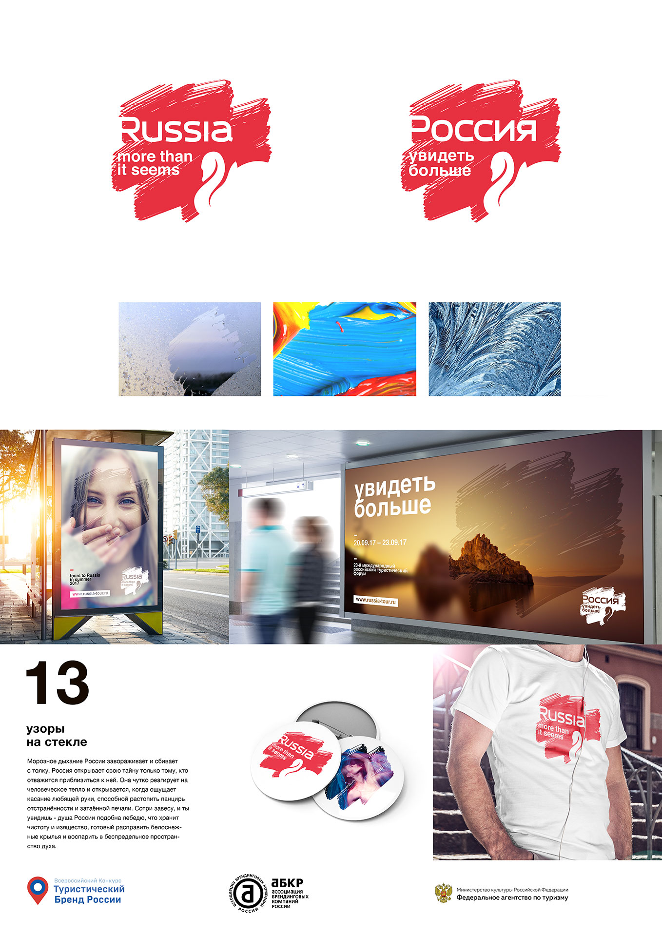 Именно эти 10 концепций и были презентованы в ЦДХ в рамках Московской биеннале дизайна в зоне «Бренд-дизайн». Международное жюри выберет из этих 10 концептов 3 работы. Затем три финальных варианта туристического бренда России будут вынесены на общенациональное голосование.